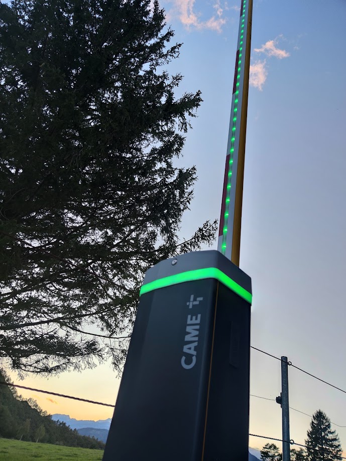 - Zapornica Came GT4 ima možnost osvetlitve droga, ki deluje kot semafor. Dvignjen položaj je zelene barve, spuščen položaj pa rdeče barve.